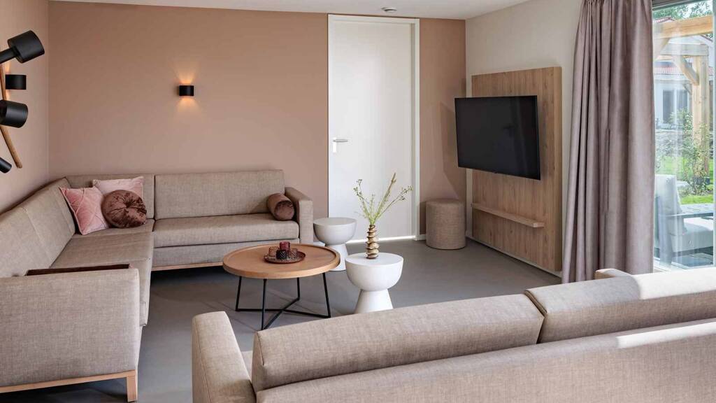 Bei dieser Immobilie haben Sie die Wahl zwischen zwei Varianten: Vermietung mit einer garantierten Rendite von € 58.525 pro Jahr bis 2029 bei 4 Wochen Eigennutzung oder Vermietung mit einer variablen Rendite. Das Design dieser Doppelhaushälfte für sechs ist vom mediterranen inspiriert. Der typische Baustil mit weißen Fassaden, hellen Fensterrahmen, Pergolen und orangefarbenen Ziegeldächern. Diese Ferienhäuser sind gasfrei, mit Sonnenkollektoren und einer Luft-Wasser-Wärmepumpe ausgestattet.. Das Ferienhaus verfügt über ein geräumiges Wohnzimmer und eine Küche. Im Erdgeschoss befinden sich 2 Schlafzimmer und 1 Bad, im Obergeschoss 4 Schlafzimmer und 2 Bäder.