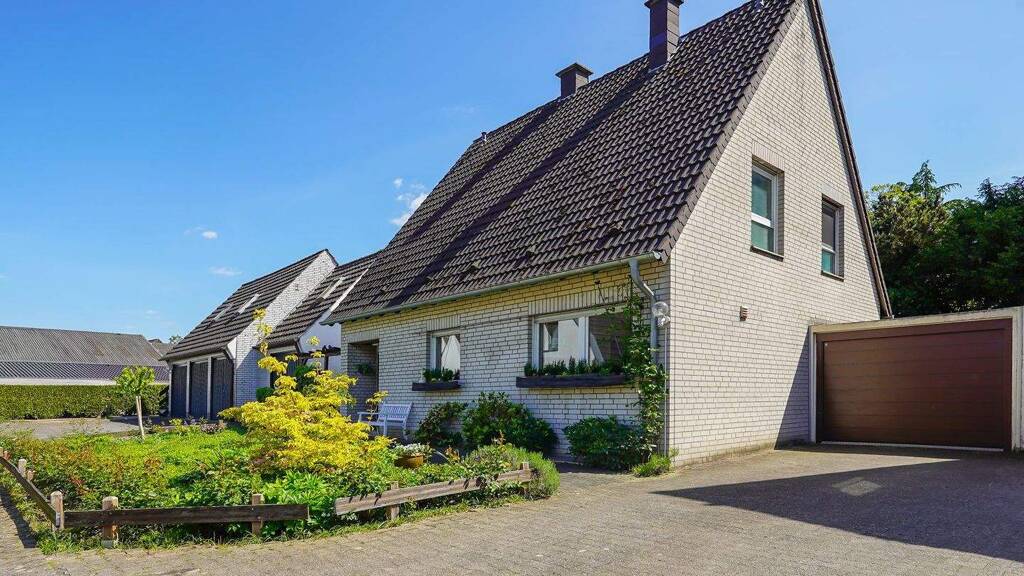 - Fassade: weißer Kalksandstein - Pflegeleichter Vorgarten ... mit Kleinpflastersteinen - liebevoll angelegter Garten ... in Südausrichtung ... mit großer Terrasse, z.T. mit Glasdach ... mit Markisen ... mit Gartenlaube - Garage direkt am Haus ... mit einem Stellplatz davor