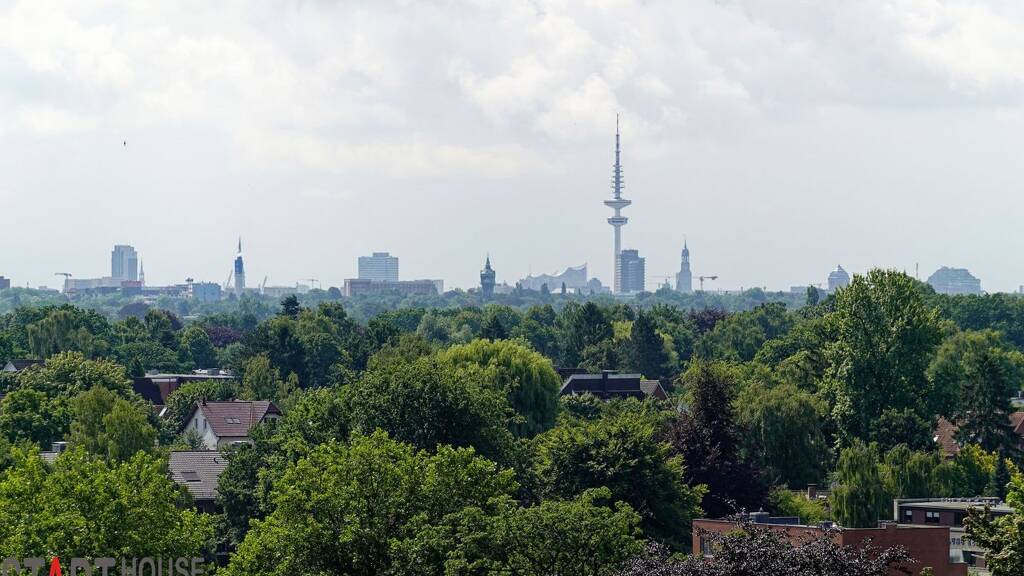 Bei der angebotenen Wohnung handelt es sich um eine Endetage im 8. Obergeschoss des Hauses. Die Wohnung verfügt über einen fantastischen, uneingeschränkten Ausblick über unser grünes Hamburg bis hin zur Elbphilharmonie. Hell und lichtdurchflutet präsentieren sich die ca. 76 m² Wohnfläche, die sich auf das Wohnzimmer mit rund 21 m², ein Schlafzimmer mit ca. 20 m², ein Kinderzimmer mit Glastrennwand zum Flur, ein weiß gefliestes Badezimmer mit Wannenbad, ein Gäste-WC und eine kleine Küche mit Möbeleinbauten sowie den üblichen Elektrogeräten, verteilen. Drei Loggien, die sich über die gesamte Breite der Wohnung aufteilen und jeweils vor dem Wohnzimmer, Kinder- und Schlafzimmer angeordnet sind, verleihen der Wohnung eine herrliche Großzügig- und Leichtigkeit.