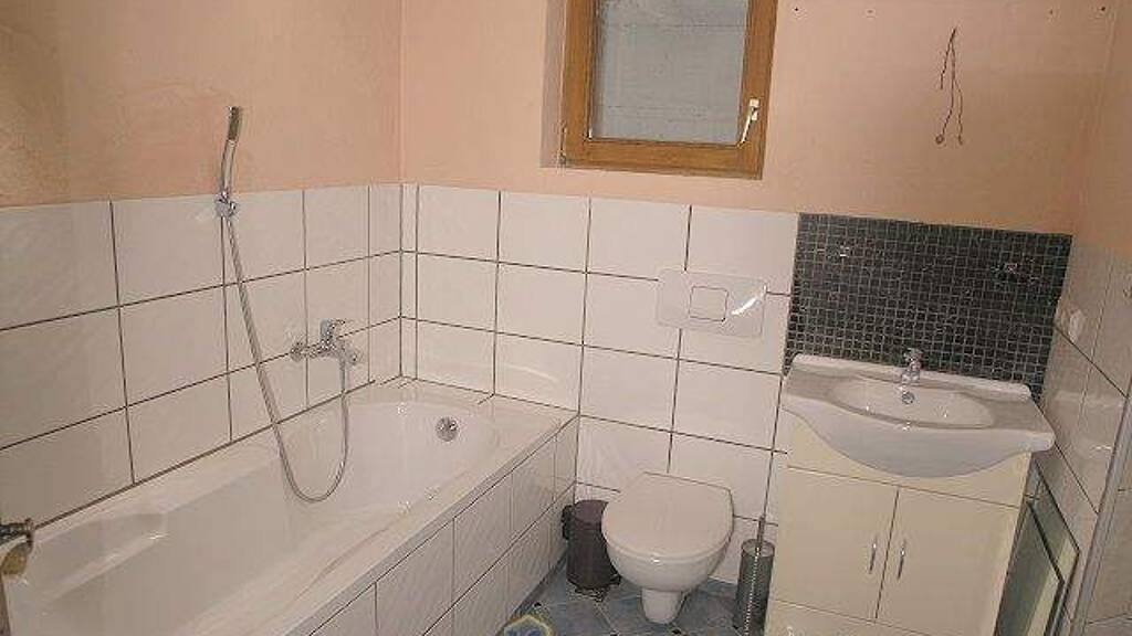 Das nachträglich als Einliegerwohnung im Jahre 2017 (3 Zimmer und ca. 86 m² Wfl.) umgestaltete Hanggeschoß/UG hat einen separaten Hauseingang mit Windfang. Ein ruhiges Schlafzimmer mit Zugang zur Terrasse in Westausrichtung, ein großzügiges Wohnzimmer mit Kachelofen und ebenfalls Zugang zur Terrasse, eine Küche mit EBK, ein Speisezimmer, so wie ein Wannenbad mit WC, Waschbecken und angrenzender bodengleicher Dusche + zusätzlichem 2. Duschbad mit WC, Waschbecken und WM-Anschluss. Der separate Technikraum mit Heizung.