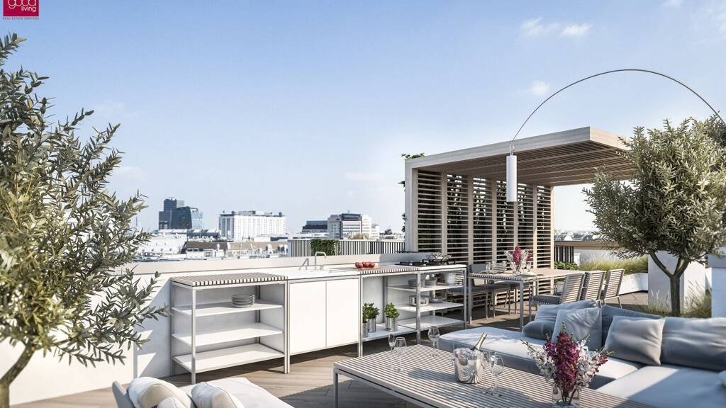Die zwei Dachterrassen laden mit insgesamt knapp 290 m² zum Sonnenbaden, Entspannen und Feiern ein - und bieten Ihnen als absolutes Highlight einen privaten Pool mit Panoramablick über die Dächer Wiens, inklusive Sicht auf den Stephansdom.