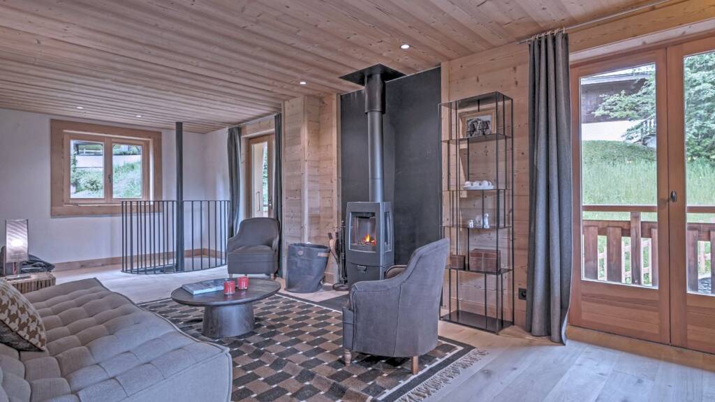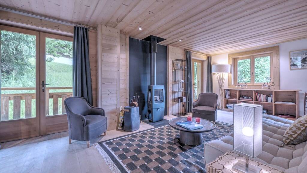 Occupying the entire first floor of a traditional chalet comprising only two units, this apartment of 142.42 m2 enjoys a prime location, offering peace and privacy just a short walk from the village center of Megeve and the Rochebrune cable car.