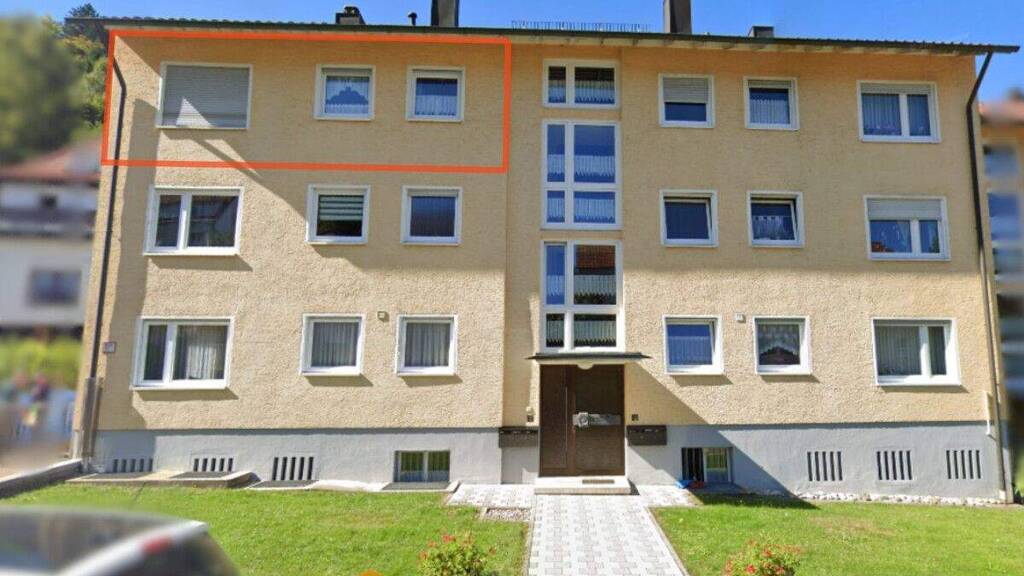 Zum Verkauf steht eine 3-Zimmer-Eigentumswohnung im 2. Obergeschoss links eines gepflegten Mehrfamilienhauses mit insgesamt sechs Wohneinheiten. Das Gebäude wurde im Jahr 1955 errichtet und wird von einer Hausverwaltung betreut. Die Wohnung verfügt über eine Wohnfläche von ca. 66 m² und bietet eine funktionale Raumaufteilung mit zwei Schlafzimmern sowie einem ca. 20 m² großen Wohn- und Esszimmer. Von hier aus besteht Zugang zum westlich ausgerichteten Balkon, der angenehme Abendsonne bietet. Die Küche ist als separater Raum ausgeführt und mit einer Einbauküche aus dem Baujahr 2009 ausgestattet. Das Badezimmer verfügt über eine Badewanne mit integrierter Duschmöglichkeit sowie einen Anschluss für eine Waschmaschine. Die Warmwasserbereitung erfolgt über einen elektrisch betriebenen Boiler. In den Wohn- und Schlafräumen ist Laminatboden verlegt, das Badezimmer ist gefliest. Die Fenster wurden Anfang der 2000er-Jahre erneuert und sind zweifach verglast. Zur Wohnung gehören eine Einzelgarage, ein privates Kellerabteil sowie ein separates Gartenabteil zur exklusiven Nutzung. Zusätzlich stehen ein gemeinschaftlicher Trockenraum sowie weiterer privater Stauraum im Speicher zur Verfügung. Beheizt wird die Wohnung über eine Einzelofenheizung mit Öl. Die Öltanks befinden sich im Keller.