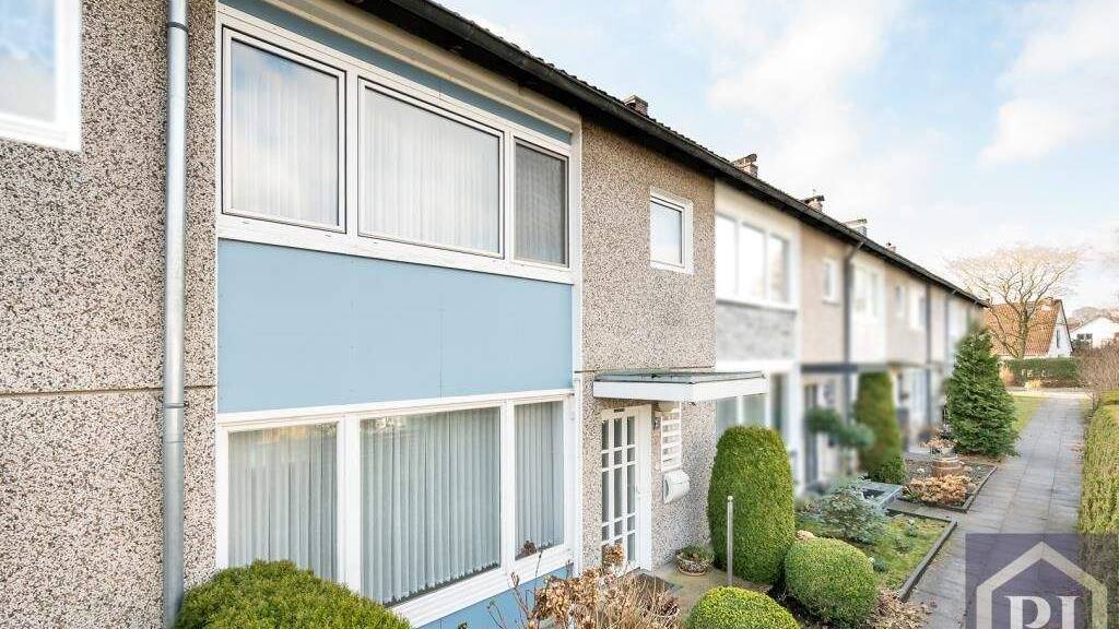 Die Reihenhausanlage präsentiert sich gepflegt und ruhig gelegen. Der überdachte Eingangsbereich führt Sie in das Haus und bietet einen geschützten Zugang bei jedem Wetter. Im Erdgeschoss empfängt Sie ein großzügiger, lichtdurchfluteter Wohn- und Essbereich mit großen Fensterflächen und Blick in den Garten. Die Decken in Holzoptik verleihen dem Raum eine warme und wohnliche Ausstrahlung. Von hier aus gelangen Sie direkt auf die sonnige Südterrasse und in den Garten. Die separate Einbauküche im Erdgeschoss überzeugt durch ihre große Arbeitsfläche und ein Fenster mit Blick ins Grüne, sodass auch beim Kochen ein angenehmes, helles Ambiente entsteht. Ein Gäste-WC mit Fenster sowie der Eingangsbereich mit Platz für eine Garderobe ergänzen das Raumangebot auf dieser Ebene. Über eine Holztreppe im Flur gelangen Sie in das Obergeschoss. Hier stehen Ihnen drei Zimmer zur Verfügung, die sich flexibel als Schlaf-, Kinder- oder Arbeitszimmer nutzen lassen. Zwei der Zimmer bieten einen schönen Blick in den Garten. Das Tageslichtbad ist mit einer Badewanne ausgestattet und sorgt für Komfort im Alltag.