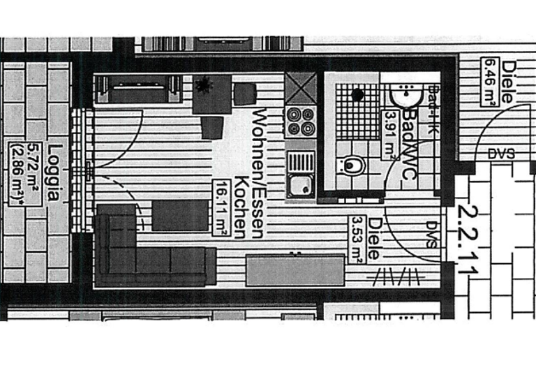 Die Wohnung verfügt über 1 Zimmer, Küche, Bad, Abstellraum, Kellerraum, Fahrradabstellfläche im Bereich der Tiefgarage und eine Loggia. Strom-, Telefon-, Internet- und Kabelfernsehkosten gehen auf eigene Rechnung.
