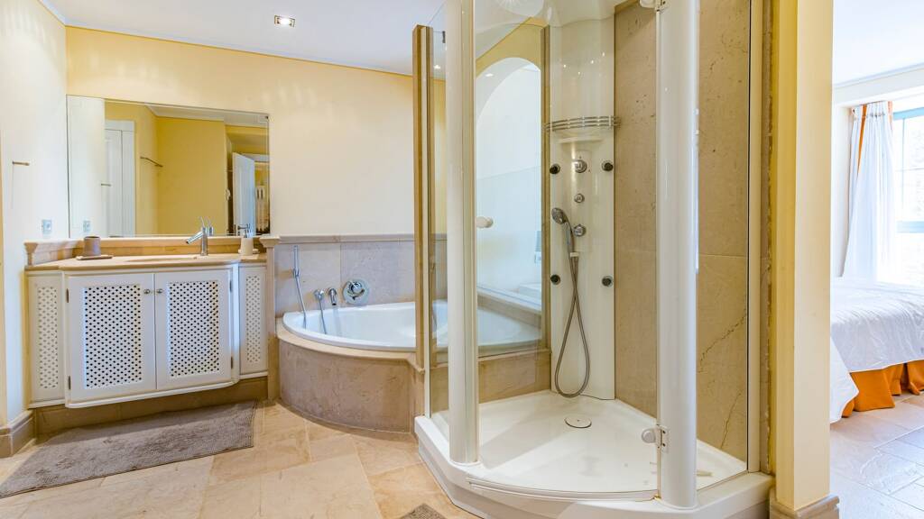 Weitere Ausstattungsmerkmale sind Antik-Marmorboden und Fußbodenheizung.