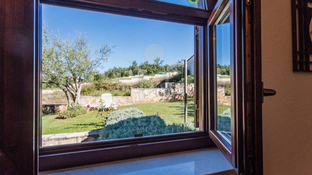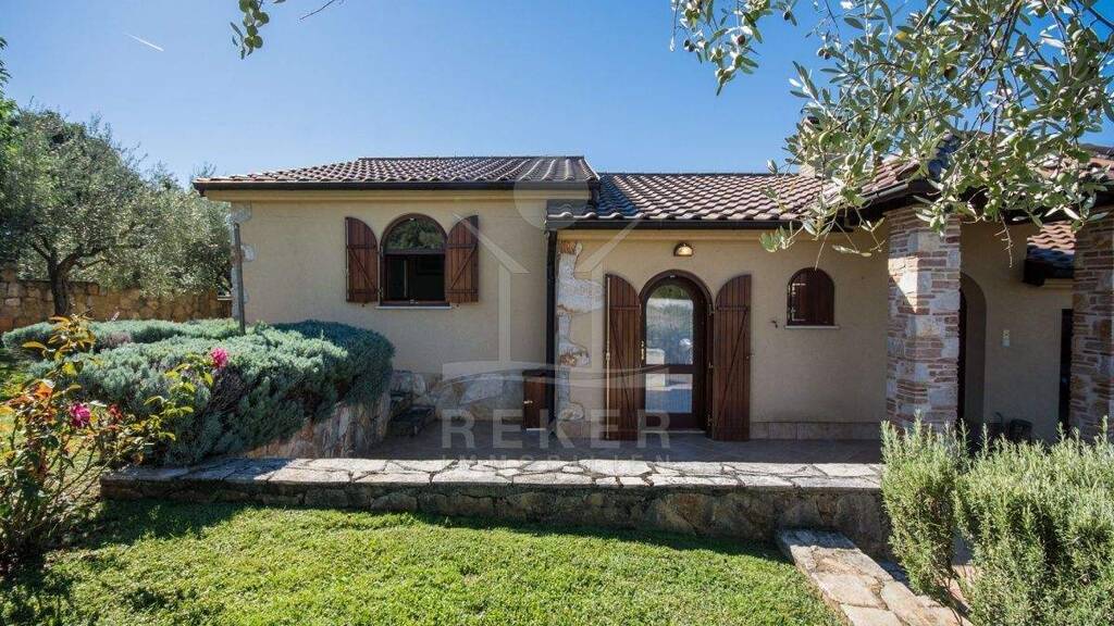 Auf einem Hügel in einem istrischen Ort nahe Porec steht dieses gepflegte Einfamilienhaus mit weitem Panoramablick auf das Meer. Die Strände erreichen Sie nach rund 10.000 m. Einkaufsmöglichkeiten, Schule und Stadtzentrum sind gut angebunden. Obwohl das Haus baulich als Doppelhaushälfte ausgeführt ist, nutzen Sie eine eigene Zufahrt und einen separaten Zugang. Das sorgt für spürbare Privatsphäre. Auf dem 400 m² großen Grundstück stehen gepflasterte Stellflächen und eine Garage zur Verfügung.