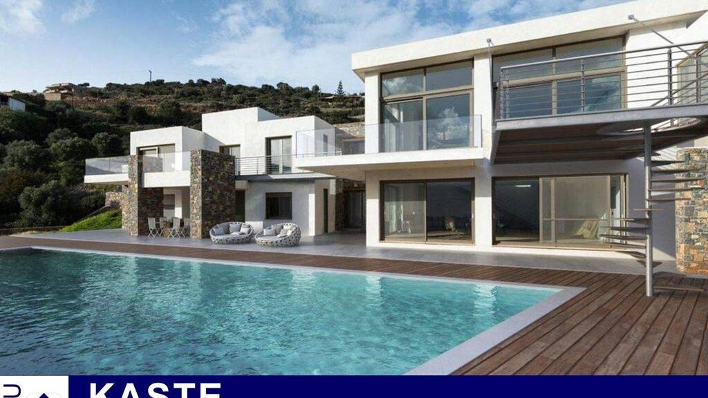 Auf einem Hügel am Rande von Agios Nikolaos auf dem Weg nach Elounda gelegen, ist dies ein einzigartiges Anwesen, das von jedem Zimmer aus einer der atemberaubendsten Aussichten genießt. Die Nähe zur malerischen Hafenstadt Agios Nikolaos macht Elounda zu einem sehr begehrten Ort für den dauerhaften Wohnsitz. In unmittelbarer Nähe zum Grundstück, liegt der wunderschöne Hotelstrand Mirabeloden, mit verschiedenen Wassersportanlagen und den Tennisplätzen. Diese geräumige helle Villa verfügt über ein großes Wohn- und Esszimmer mit Kamin. Selbst in der wunderschönen Design-Küche hat man einen ungestörten Ausblick in die atemberaubende Landschaft Kretas. Von dort aus gelangt man auf die wunderschöne große Veranda mit einem Pool. Der großzügige Garten bietet nicht nur viel Platz zum Entspannen - Er besitzt auch eine größeren und einen kleinen BBQ-Bereich südlich und nördlich der Villa. Über den Rest des Hauses erstrecken sich 4 großen Schlafzimmern. Das Hauptschlafzimmer besitzt ein En-Suite-Badezimmer und einen begehbaren Kleiderschrank. Des weiteren gibt es noch zwei große Badezimmer und ein zusätzliches Gäste-WC. Außerdem gibt es einen Fitnessraum und einen großes Spielzimmer im Keller des Hauses. In allen Empfangs- und Schlafzimmern gibt es Klimaanlagen, die sowohl die Räume kühlen als auch heizen