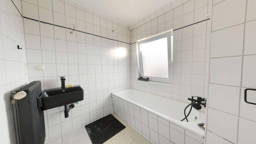 Das Tageslichtbad ist mit einer Badewanne ausgestattet und bietet durch das Fenster eine freundliche und gut belüftete Atmosphäre.