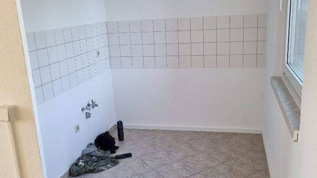 Die Wohnung befindet sich im 5. OG eines Mehrfamilienhauses. Sie hat 2 etwa gleich große und 1 etwas kleineres Zimmer, Küche und Bad mit Badewanne.