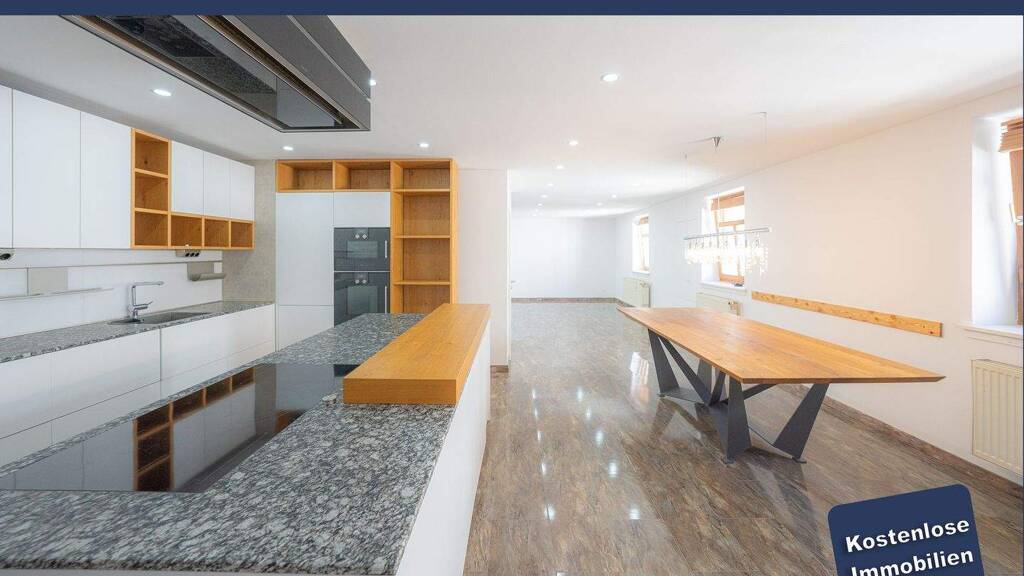 Wohnbereich 1 - ca. 190 m² | 5 Zimmer Großzügige Hauptwohnung mit moderner Wohnküche, Laminatboden mit Marmorstein Optik , durchdachter Raumaufteilung, stilvoller Lichtplanung sowie hochwertigem Designerbad mit Walk-in-Dusche.