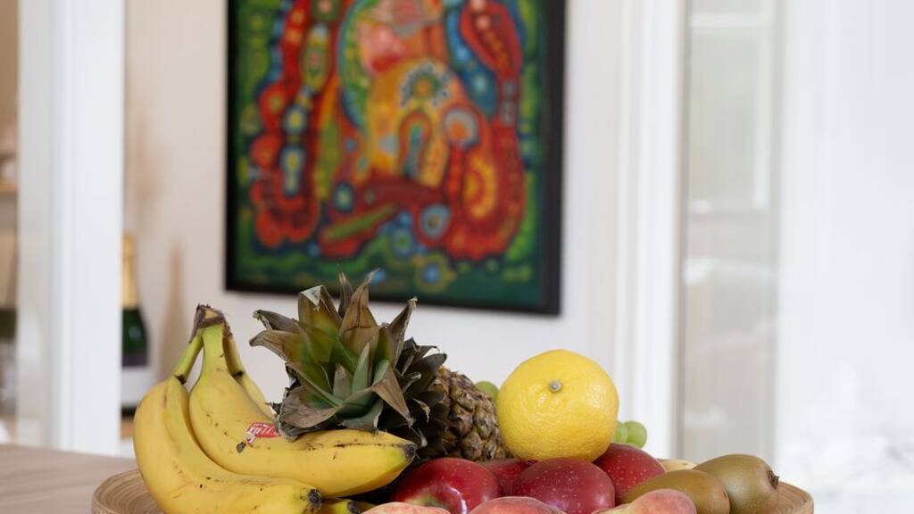Die offene komplett ausgestattete Einbauküche bietet dem Koch-Herz alles, was es begehrt. Kühlschrank mit Gefrierfach, Herd mit Ceranfeld, Mikrowelle, Spülmaschine, Kaffeemaschine, Toaster etc.