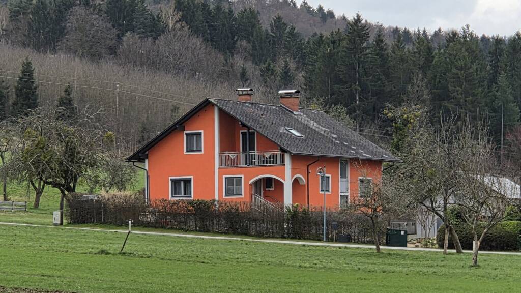 Dieses für die Region sehr typische Wohnhaus befindet sich in einer Streusiedlung an einer Sackgasse und wurde im Jahr 1973 in Massivbauweise errichtet. Die Fertigstellung bzw. der Erstbezug war in den darauffolgenden Jahren. Das Haus wurde am Grundstück dermaßen gut situiert, so dass sich im Ost- und Südbereich des Grundstückes ein sehr gut nutzbarer Garten mit stufenförmiger, begrünter Erdterrasse und ebenfalls auch gut nutzbare Erholungsflächen ergeben haben.