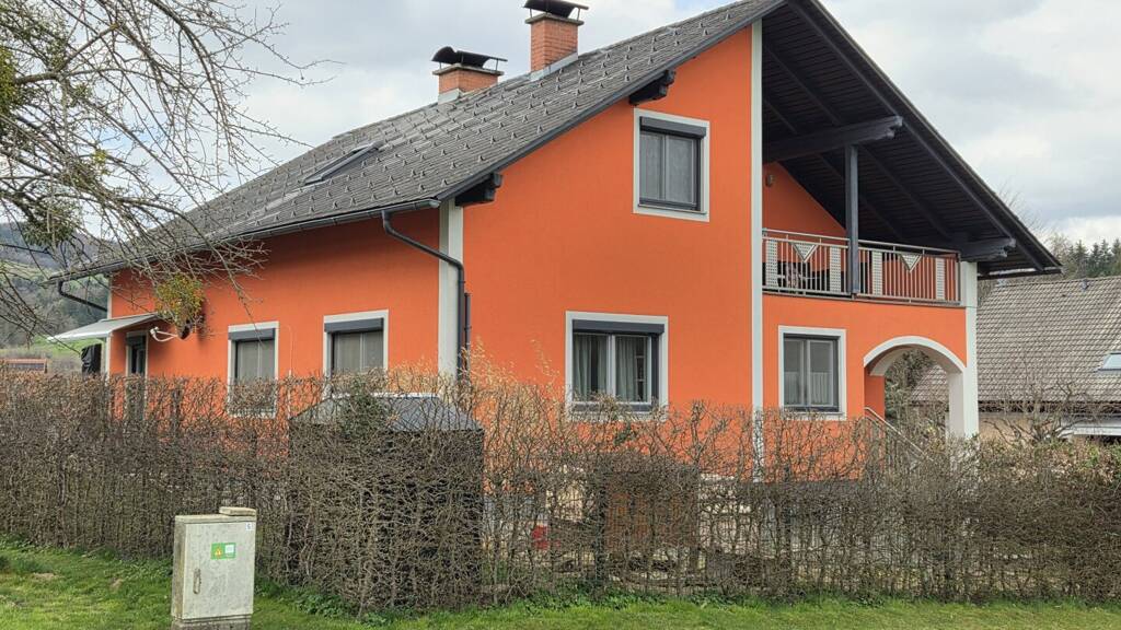 Sehr gepflegtes, räumlich gut eingeteiltes, massiv gebautes Wohnhaus mit Vollkeller, einer integrierten Garage sowie einer Langcarportanlage und einem Nebengebäude mit einer weiteren Garage samt Hobbywerkstatt, luftiges Holzlager und weiteren Abstellräumen.