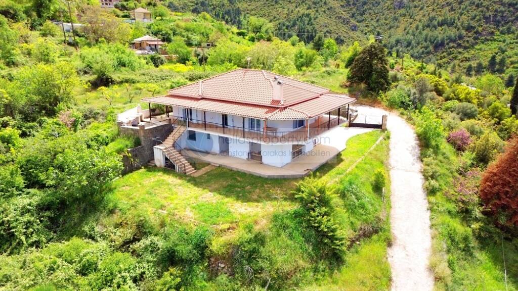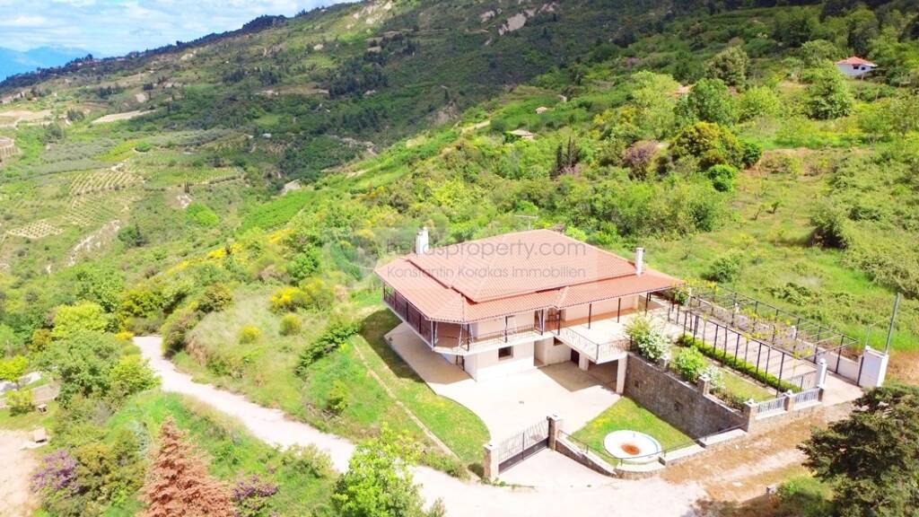 Im malerischen Dorf Chelydoreo steht dieses wunderschöne zweistöckige Einfamilienhaus mit einer Fläche von 270 m² auf einem Grundstück von 822 m².