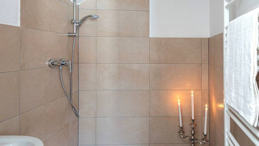 Das moderne Badezimmer ist ausgestattet mit Walk-In-Dusche und Waschtisch, das WC ist idealerweise getrennt.