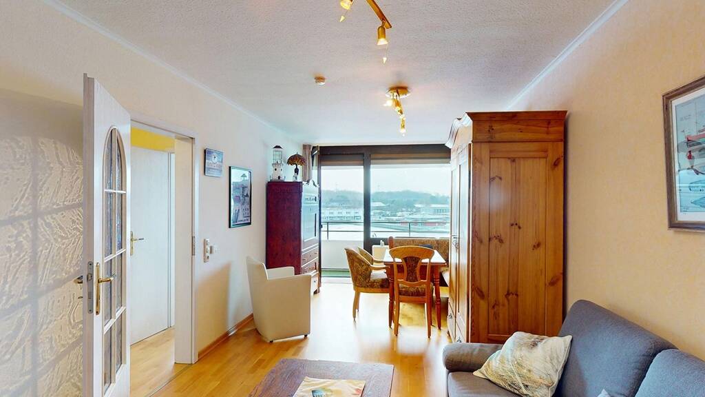 Das Appartementhaus "Hanseatic" überzeugt durch seine außergewöhnliche Lage auf dem Steinwarder - eingebettet zwischen der Ostsee im Norden und dem Binnensee im Süden. Nur eine Straßenquerung trennt das Gebäude vom feinsandigen Badestrand. Die angebotene Wohnung befindet sich in einer der obersten Etagen in bevorzugter Südlage und bietet einen beeindruckenden, freien Blick über den Binnensee. Die Einheit präsentiert sich gemütlich und funktional ausgestattet und ist ideal auf die Nutzung als Ferienimmobilie ausgerichtet. Sie verfügt über Schlafmöglichkeiten für bis zu vier Personen. Zur Ausstattung gehören Parkettboden, elektrische Rollläden sowie Flachbild-TV im Wohn- und Schlafbereich. Ein modernes, ausziehbares Schlafsofa im Wohnzimmer schafft zusätzlichen Komfort, während im Schlafzimmer ein Boxspringbett für erholsame Nächte sorgt. Ein eigener Pkw-Stellplatz am Ende des Wendehammers rundet das Angebot ab. Die Wohnung befindet sich in einem gepflegten Zustand und bietet zugleich attraktives Potenzial zur individuellen Modernisierung und wertsteigernden Neugestaltung - eine ideale Gelegenheit, die Immobilie nach eigenen Vorstellungen zu optimieren und langfristig von der starken Feriennachfrage in Heiligenhafen zu profitieren.