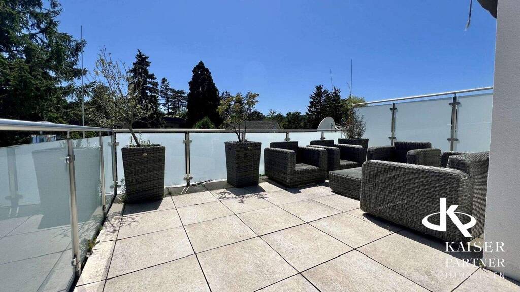 Ein weiteres Highlight dieser Immobilie sind die großzügigen Außenbereiche, die Ihnen die Möglichkeit bieten, die Sonne und frische Luft in vollen Zügen zu genießen. Die Terrasse auf der Gartenebene bietet mit dem Essplatz direkt bei der Küche, der Lounge vor dem Wohnbereich und der großzügigen Grillstation, einzeln abgegrenzte großzügige Bereiche. Auf den Balkonen und den zwei Terrassen können Sie entspannen, genießen Sie den Blick auf die grüne Umgebung und die Stadt von der 42 m² Dachterrasse.