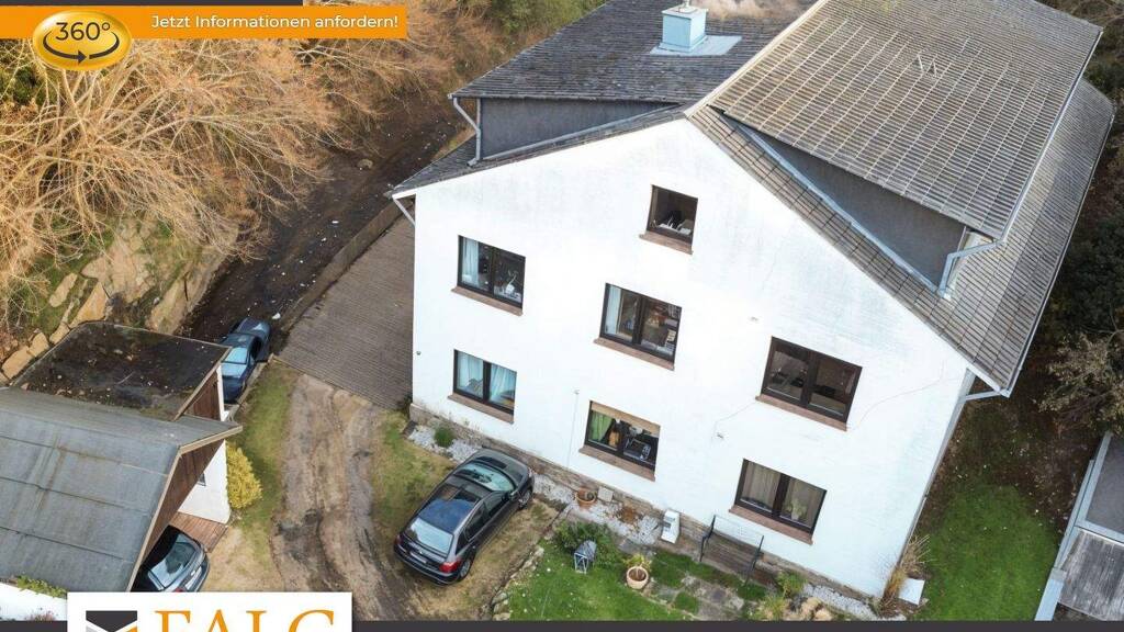 Auf insgesamt 360 m² Wohnfläche verteilen sich 13 Zimmer auf 3 Etagen. Im Erdgeschoss befindet sich eine sanierungsbedürftige Wohnung mit 4 Zimmern und Terrasse. Die Obergeschosswohnung mit 5 Zimmern ließe sich dank der durchdachten Raumaufteilung auch in zwei kleinere Wohnungen aufteilen. Schließlich begeistert das Dachgeschoss durch seine 4 großen Zimmer und einer edel präsentierten Balkenkonstruktion. Alle drei Wohnungen bestechen durch große offene Wohnbereiche.