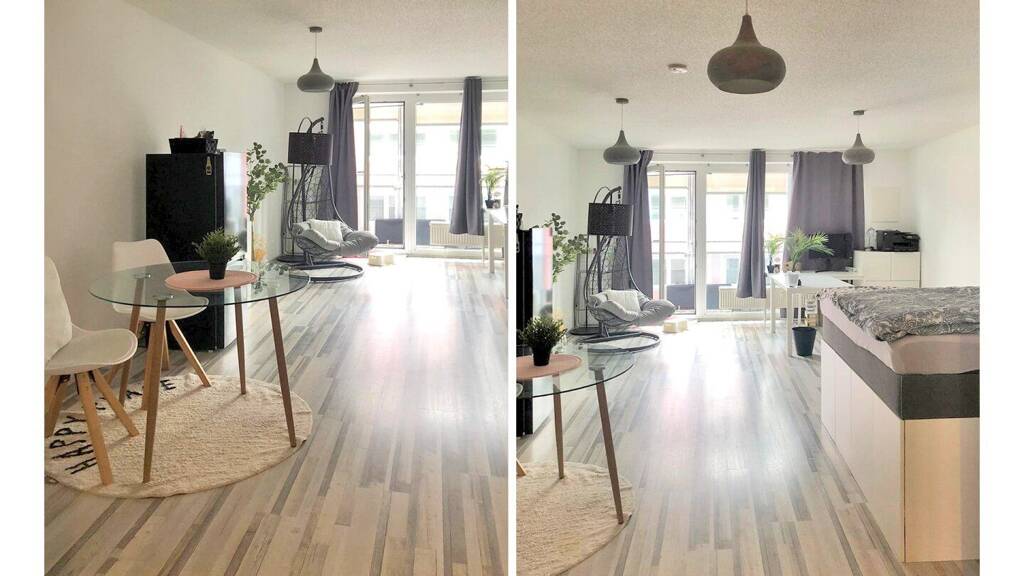 Die Wohnung bietet eine durchdachte Raumaufteilung: eine voll ausgestattete Küche, ein Badezimmer mit Dusche und WC, einen hellen Wohn- und Schlafbereich sowie einen Balkon mit Blick auf die Nordkette und integriertem Sonnenschutz. Die funktionale Einbauküche samt Elektrogeräten ist im Kaufpreis enthalten und wurde vor zwei Jahren mit einer neuen Arbeitsplatte aufgewertet.