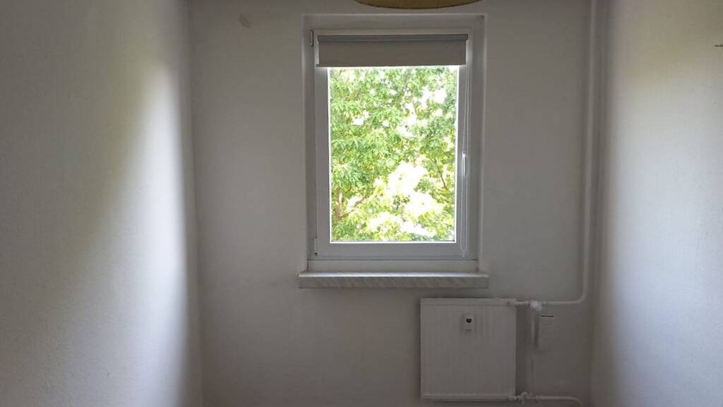 Die Wohnung befindet sich im vierten Obergeschoss und umfasst ein Wohnzimmer mit Balkon und zwei Schlafzimmer. Weiterhin sind eine Tageslichtküche mit Fliesenspiegel sowie ein gefliestes (Wannen-)Bad vorhanden.