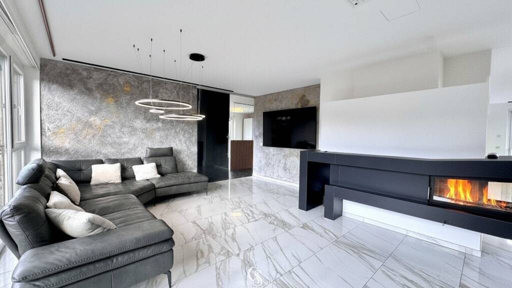 Das gesamte Penthouse ist mit wunderbaren Marmor/- und die Sanitärbereiche sind mit Feinsteinzeug-Bodenfliesen versehen. Diese werden mit einer elektronisch regelbaren Fußbodenheizung beheizt und sorgen so für ein sehr angenehmes Wohnambiente.
