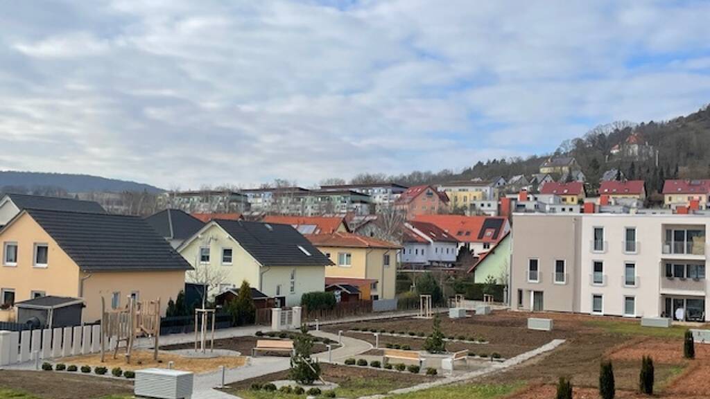 Das BESONDERE an dieser tollen Wohnanlage ist das durchdachte „schwellenarme“ Baukonzept, welches ein Wohnen bis ins hohe Alter ermöglicht. Neben „barrierefreien“ Wohnungen wurde in vielen Bereichen darauf geachtet, dass nach Möglichkeit auf Schwellen oder Stufen verzichtet wurde. Ein weiteres Highlight ist die großzügige parkähnliche Grünanlage die sich entlang der Häuser erstreckt. Hier ist neben einer ausgesuchten Bepflanzung auch ein Spielplatz für die jungen Bewohner geplant.