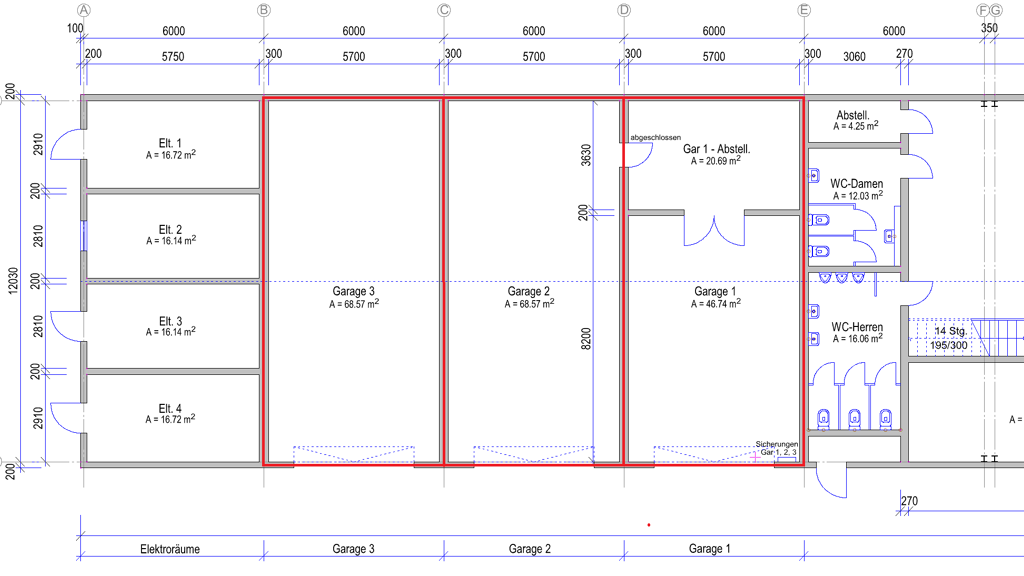 Die Werk- und Lagerstätten eignen sich gut zur Unterstellung von Fahrzeugen jedweder Art. Alle drei Hallen / Garagen sind ca. 69,00 m² groß und sind mit elektrischen Rolltoren ausgestattet. Die Höhe der Rolltore bzw. Durchfahrt beträgt ca. 3,00 m bis 3,50 m.