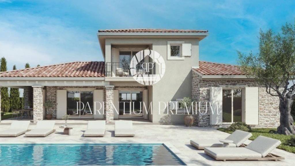 Diese neue Villa im modernen Stil mit rustikalen Details, die zum istrischen Klima gehören, wird an einem attraktiven Standort in einer begehrten Siedlung gebaut.