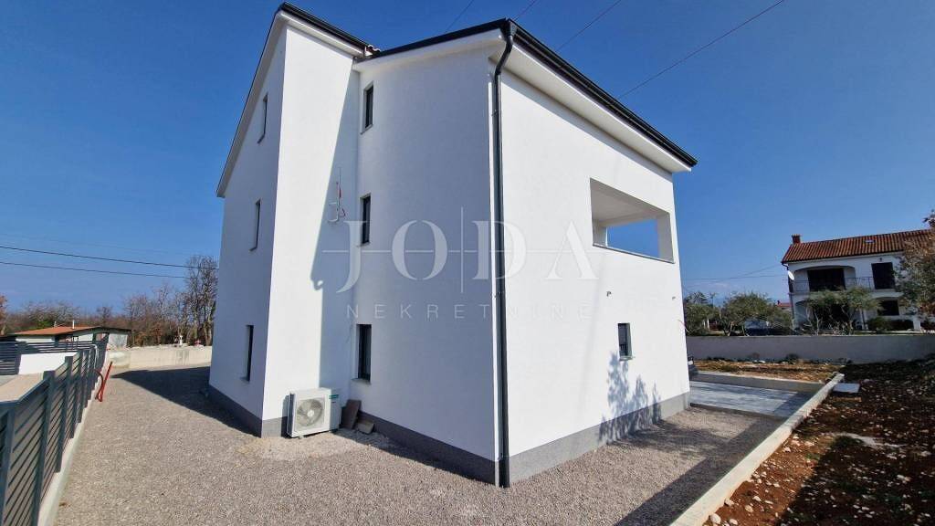 Das Haus hat eine Wohnfläche von 193m2 und wurde auf einem Grundstück von 657m2 errichtet. Es ist in drei Etagen aufgeteilt - Erdgeschoss, Obergeschoss und Dachgeschoss. Im Erdgeschoss gibt es ein Wohnzimmer mit Küche, einen Abstellraum oder eine Waschküche und eine Toilette. Im ersten Stock gibt es zwei Schlafzimmer, jedes mit eigenem Bad, und zwei Terrassen - eine mit Blick auf das Meer, die andere mit Blick auf das Innere und das Grün. Das Dachgeschoss ist ideal für ein großes Hauptschlafzimmer oder zwei kleinere Schlafzimmer mit Bad. In den Bädern ist eine Fußbodenheizung installiert. Im Dachgeschoss gibt es auch eine Terrasse mit freiem Blick auf das Meer. Auf der Terrasse befindet sich ein Whirlpool. Das Haus hat auch einen Garten, in dem mehrere Autos parken können, und es besteht die Möglichkeit, ein Schwimmbad zu bauen. Es befindet sich in ruhiger Lage, ca. 2,5 km vom Meer entfernt. Kontaktieren Sie uns für weitere Informationen!