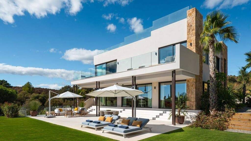 In der exklusiven Enklave Marbella Hill Club an der Marbella Goldenen Meile gelegen, bietet diese neu gebaute zeitgenössische Villa 885 m² refined interior space auf einem großzügigen Grundstück von 3.003 m², ergänzt durch 467 m² Terrassen. Klare Architekturlinien werden durch natürliche Steinverkleidungen, warme Holzausführungen und Marmorelemente abgemildert, wodurch ein ausgewogenes Design entsteht, das modern und zeitlos wirkt. Eine neutrale Farbpalette verstärkt das Gefühl von Ruhe, während bodenhohe Verglasung das umliegende Grün und das Mittelmeer einrahmt. Das Layout ist sorgfältig darauf ausgelegt, Offenheit mit subtiler Trennung zu verbinden. Der Hauptwohnraum fließt mühelos in den Essbereich und eine topmoderne Küche mit Premiumgeräten und Weinkühlschrank über, ideal für den täglichen Gebrauch und für Unterhaltung. Große Schiebetüren verbinden die Innenräume direkt mit den Terrassen und dem Garten und stärken den Innen- oder Außen-Lifestyle, für den die Goldene Meile berühmt ist. Fünf großzügig dimensionierte Schlafzimmer und sechs Badezimmer gewährleisten Komfort und Privatsphäre für Familie und Gäste. Die Hauptsuite bietet erhöhte Ausblicke, ein elegantes Bad mit Doppelwaschbecken, Walk-in-Dusche und freistehender Badewanne sowie direkten Zugang zu privaten Terrassen. Weitere Gästebereiche sind ebenso gut ausgestattet, während zwei Gästetoiletten Praktikabilität für Veranstaltungen bieten. Ein dediziertes Home-Office bietet einen ruhigen Arbeitsplatz innerhalb der Residenz. Die Unterseite ist als privater Freizeitbereich gestaltet, mit einer maßgeschneiderten Bar und einem Entertainment-Lounge, einem voll ausgestatteten Fitnessraum, einem Indoor-Pool und einer Türkischen Bad, was zu Hause ein echtes Spa-Erlebnis ermöglicht. Draußen laden ein privater Pool, gepflegte Gärten und mehrere Lounge- und Essbereiche zu Entspannung das ganze Jahr über ein. Ein beeindruckendes Solarium mit Outdoor-Küche bietet Panoramablick auf das Meer und eignet sich perfekt für Sonnenuntergangs-Geselligkeiten. Die Immobilie profitiert von einer privaten Garage mit Platz für zwei Fahrzeuge, großzügigen Zufahrtswegen und gestalteten Eingangsbereichen, die die unaufgeregte Eleganz des Hauses widerspiegeln. In einer prestigeträchtigen und diskreten Wohnanlage gelegen, bietet es Frieden, Privatsphäre und gleichermaßen Nähe. Von dieser erhöhten Position an der Goldenen Meile genießen Bewohner schnelle Zugänge zu Puente Romano und Marbella Club, feine Restaurants wie Nobu und Bibo Dani García, luxuriöse Boutiquen, Strandclubs und der Promenade, die Marbella-Stadt mit Puerto Banús verbindet. Internationale Schulen, Golfplätze und Wanderwege in den Sierra Blanca-Hügeln sind alle bequem erreichbar, was diese Residenz zu einer perfekten Verbindung von Fünf-Sterne-Resort-Lifestyle und alltäglicher Bequemlichkeit macht.