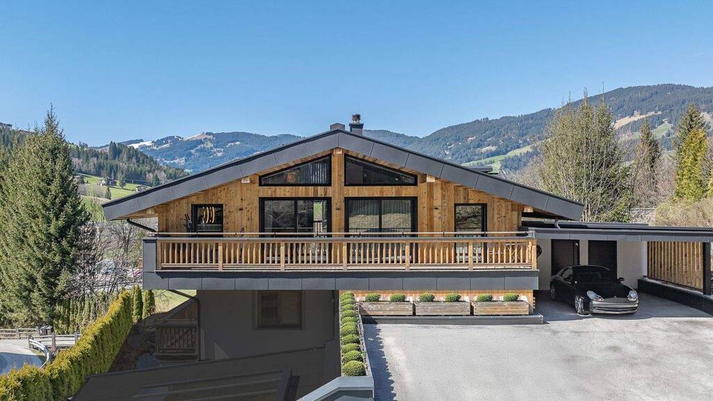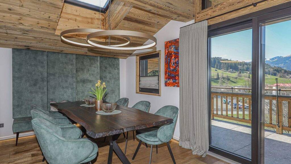 Das im Jahr 2022 neu errichtete Penthouse nimmt das gesamte Dachgeschoss eines repräsentativen Hauses ein und garantiert damit maximale Privatsphäre. Ein besonderes Highlight ist die direkte Ski-in-Anbindung - mit den Skiern gelangen Sie nahezu bis vor die Haustür. Der Einstieg des Skigebiets Kitzbüheler Alpen befindet sich nur wenige Gehminuten entfernt. Bereits die Ankunft vermittelt Exklusivität: Über den privaten, ca. 107 m² großen Vorplatz erreichen Sie den großzügigen Carport mit Platz für zwei Fahrzeuge. Von hier aus gelangen Sie über einen eigenen Zugang direkt in Ihr Penthouse. Die einladende Diele mit maßgefertigten Einbauten, Gäste-WC sowie Hauswirtschafts- und Abstellraum unterstreichen die durchdachte Planung und den hohen Qualitätsanspruch. Der lichtdurchflutete Wohnbereich mit sichtbarer Altholz-Dachstuhluntersicht und offenem Kamin bildet das Herzstück dieser Immobilie. Großzügige Fensterfronten holen die Berglandschaft in den Raum und schaffen eine unvergleichliche Atmosphäre. Die exklusive Designerküche mit modernsten Markengeräten fügt sich harmonisch ein und wird zum stilvollen Treffpunkt. Im angrenzenden Essbereich finden bis zu acht Personen Platz - perfekt für gesellige Abende in stilvollem Ambiente. Zwei Außenbereiche laden zum Genießen ein: Der Balkon in nordwestlicher Ausrichtung bietet traumhafte Sonnenuntergänge und spektakuläre Ausblicke, während die südwestlich gelegene Loggia mit Salzwasser-Whirlpool der Marke HotSpring pure Entspannung verspricht - ein privater Rückzugsort mit Wellnesscharakter.