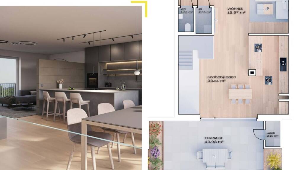 EIGENTUMSWOHNUNGEN in Vöcklabruck In zentraler Lage in Vöcklabruck errichtet WIMBERGER Immobilien 31 neue Eigentumswohnungen, die modernen Wohnkomfort mit hoher Lebensqualität verbinden. Ein Ort zum Wohlfühlen - für heute und morgen. Haus B - TOP 13: * 117 m2 Wohnfläche * 53 m2 Terrasse/Loggia/Balkon * 6 m2 Kellerabteil * Preis Wohnung: € 573.900,- (schlüsselfertig) * Preis 2 Tiefgaragenstellplätze: € 50.000,- (verpflichtend) * Maklerprovision: 3% des Kaufpreises zzgl. 20% USt. MEHR INFORMATIONEN BEI IHREM ANSPRECHPARTNER Dominik Neuwirth T +43 664 / 88 20 10 34 M anfragen@wimbergerimmobilien.at Infrastruktur / Entfernungen Gesundheit Arzt <500m Apotheke <475m Krankenhaus <1.400m Kinder & Schulen Schule <250m Kindergarten <475m Höhere Schule <575m Nahversorgung Supermarkt <100m Bäckerei <600m Einkaufszentrum <875m Sonstige Bank <375m Geldautomat <375m Polizei <550m Post <925m Verkehr Bus <225m Bahnhof <900m Autobahnanschluss <5.225m Angaben Entfernung Luftlinie / Quelle: OpenStreetMap