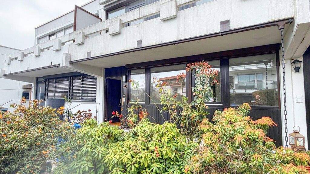 Dieses Reihenhaus in Kronberg-Oberhöchstadt bietet deutlich mehr Platz als ein typisches Reihenhaus und überzeugt durch einen großzügigen Grundriss sowie eine familienfreundliche, naturnahe Lage. Die Wohnfläche verteilt sich auf vier oder fünf Zimmer, sodass das Haus flexibel nutzbar ist - etwa für Familien mit Platzbedarf, Arbeiten von zu Hause oder individuelle Wohnkonzepte. Besonders hervorzuheben ist die offene, großzügige Raumaufteilung, die durch das Flachdach, die klare Architektur und die Hausbreite von 6,5 Metern unterstützt wird. Im Obergeschoss besteht die Möglichkeit, drei oder vier Schlafzimmer einzurichten, je nach persönlichem Bedarf (siehe Grundriss mit Alternative). Auf beiden Gebäudeseiten befinden sich Balkone, die den Wohnbereich zusätzlich erweitern. Der Balkon zur Gartenseite ist mit einem Glasdach und einer Markise ausgestattet und damit auch bei weniger stabilem Wetter gut nutzbar. Vom Wohnzimmer gelangen Sie über die nach Westen ausgerichtete Terrasse in den Garten. Dieser ist hübsch angelegt und bietet einen angenehmen Rückzugsort mit viel Grün. Weiterhin stehen im Untergeschoss neben einem großen Hobbyraum mit einem Ausgang in den Garten drei Nutzräume zur Verfügung. Das Haus wurde gut instand gehalten, so wurden in den letzten Jahren z.B. die Gasheizung und der Parkettboden erneuert. Nun stehen einige weitere Renovierungsarbeiten an, die das Haus in neuem Glanz erstrahlen lassen. Außerdem gehört ein zum Haus ein Garagenplatz. Insgesamt ein stimmiges Wohnkonzept, das durch seine ungewöhnlich großzügige Wohnfläche, die flexible Zimmeraufteilung, die ruhige Lage sowie die gut nutzbaren Außenbereiche überzeugt.