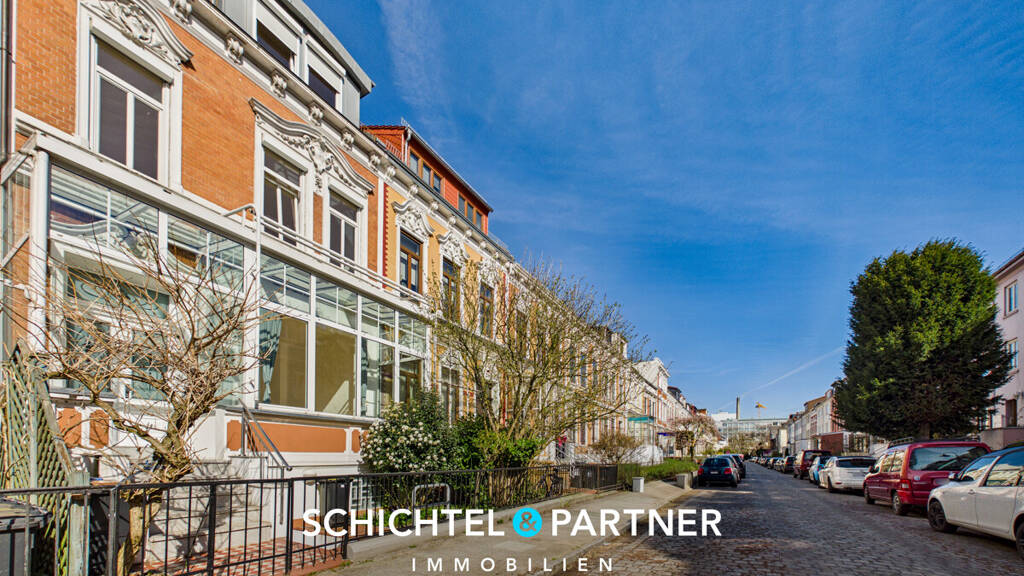 Strahlend durch viel Lichteinfall, wohnlich für eine Familie und lukrativ teilbar für Investoren. So präsentiert sich unser Altbremer Traumhaus im Flüsseviertel und wartet auf einen neuen Eigentümer.