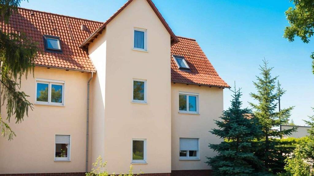 Willkommen in Doberschütz! Inmitten des Ortes, jedoch in ruhiger Lage, erwartet Sie dieses vollvermietete Mehrfamilienhaus mit großem Garten auf einem 1200 qm großen Grundstück. Die roten Dachziegel und die gedämmte und verputzte Fassade verleihen dem Haus ein ansprechendes Äußeres.