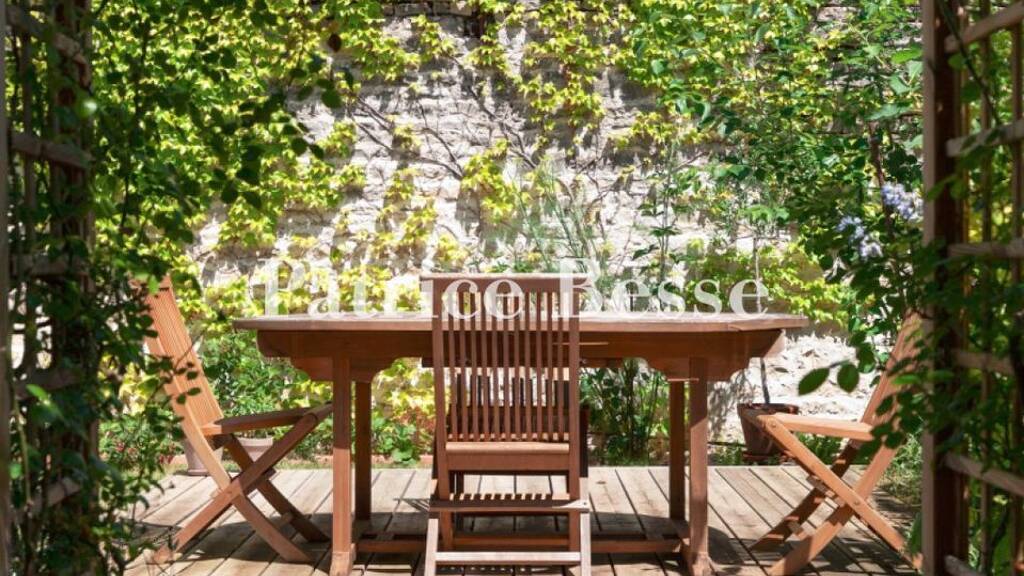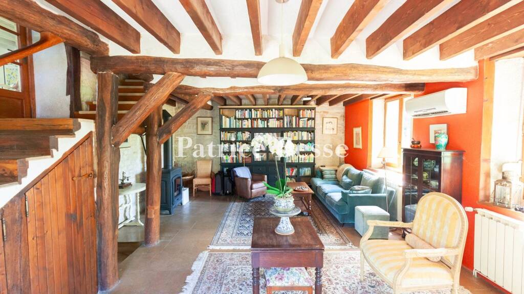 Set back from a quiet street, the property is mostly hidden from view except for the outbuilding's gable end, which gives on to the street. Accessible via two gates, one pedestrian, the other for vehicles, the property also includes, on its western end, two adjacent barns each with their own separate street access: a single door for the first and a garage door for the second, which was created expressly for this purpose. Once past the gate, the garden, planted with many trees and flowers, is landscaped into several different areas, while the two charming farm buildings feature pointed rubble stone exteriors, characteristic of the region as well as small Burgundy flat tile gable roofs. As for the outbuilding it is topped with interlocking tiles, while a conservatory, subtly integrated and designed, connects the two dwellings and provides verdant views of the garden on either side.
