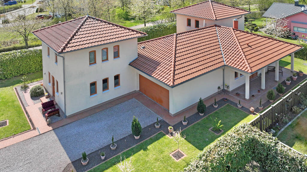 Diese architektonisch besondere Immobilie wird Sie begeistern. Und sie passt mit ihrem Energiekonzept aus Erdwärme, Wärmerückgewinnung sowie geregelter Be- und Entlüftung perfekt in die jetzige Zeit. Im Jahr 2009 errichtet, bietet sie nicht nur luxuriösen Wohnkomfort sondern auch ganzjähriges Urlaubsfeeling. Über einen Laubengang sind Windfang und Diele zu begehen. Von hieraus sind die einzelnen Wohn- und Funktionsbereiche erreichbar. Der Hauptwohnbereich besticht durch sein tolles Raumgefühl. Angrenzend lädt der großzügige Kaminbereich zum Entspannen und Träumen ein. Ein Essbereich, ein Küchenbereich mit Einbauküche, ein separater Arbeitsbereich, ein Hauswirtschaftsbereich und ein Gäste-WC runden diese Wohnebene ab. Die anliegende sichtgeschützte Terrasse macht Lust auf gemütliches Beisammensein, einen zünftigen Grillabend oder ein wenig Zweisamkeit bei einem Gläschen Wein. Im Obergeschoss haben ein Schlafbereich mit begehbarem Kleiderschrank, ein komfortables Vollbad und ein separates WC ihren Platz gefunden. Auf dem, vom Schlafbereich begehbaren, Balkon ist sichtgeschütztes Entspannen möglich. Im Vorderhaus befindet sich eine exklusive möblierte 4-Zimmerwohnung. Über zwei Ebenen glänzt sie mit bester Ausstattung und Komfort. Als etablierte Ferienwohnung bereitet sie den jetzigen Eigentümern viel Freude. Architektonisch gelungen fügt sich eine Doppelgarage, mit direktem Zugang zum Hauswirtschaftsbereich, in das Ensemble ein. Sollten Sie wassersportbegeistert sein und ein Boot besitzen? Kein Problem. Die Marina im Westhafen ist nur 5 Autominuten entfernt. Suchen Sie keine Immobilie "von der Stange", dann ist diese Immobilie mit ihren vielfältigen Nutzungsmöglichkeiten ( Wohnen und Arbeiten, Generationenwohnen, Ferienvermietung des Vorderhauses) die Richtige für Sie.
