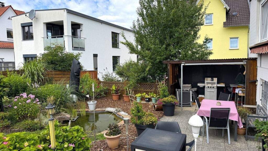 Das ca. 585 m² große Grundstück lädt zum Entspannen, Gärtnern und Wohlfühlen ein. Der liebevoll gestaltete Garten mit Gartenteich ist das Herzstück des Grundstücks – perfekt für Familienfeste, Gartenarbeit oder einfach zum Abschalten und Natur genießen. Auf der schönen Sonnen-Terrasse mit Grillplatz lassen sich hervorragend Grillabende verbringen.