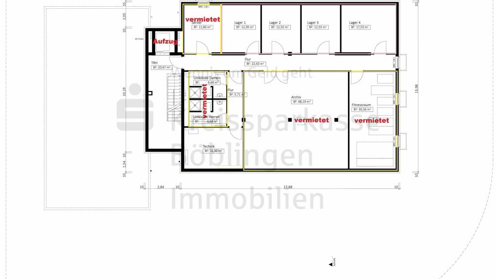 Die Fläche befindet sich im 2. OG und ist ca. 122 m² groß. Das WC ist fertiggestellt, die Raumaufteilung und die Ausstattung kann noch an Ihre Anforderungen angepasst werden.
