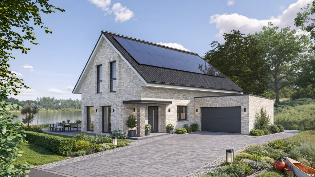 - massive Klinkerfassade im Standard enthalten, auf Wunsch auch mit Holz- oder Putzfassade lieferbar - Heizungstechnik auf Ihre Wünsche hin konfigurierbar - auf Wunsch auch mit Fußbodenheizung mit Kühleffekt im Sommer lieferbar - Kontrollierte Be- und Entlüftung fertig installiert - Elektroinstallation fertig hergestellt - Hochwertige Ausstattung mit Markenfabrikaten - 3-Scheiben-Wärmeschutzglas - Rollläden im Standard enthalten, auf Wunsch auch mit Elektroantrieb lieferbar - Schwimmender Estrich mit Wärmedämmung verlegt - Sanitär-Rohinstallation (ohne Sanitär-Objekte) enthalten