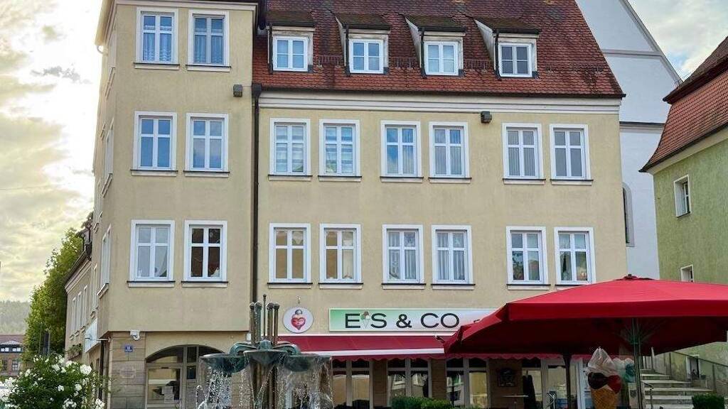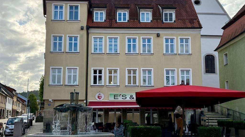 In dem ansprechenden Geschäftshaus, das Mitte der 1990er komplett neu aufgebaut wurde, besteht aus verschiedenen Gewerbeineheiten. Im Erdgeschoss befinden sich eine Eisdiele und ein Laden für Sanitätsbedarf, im 1. OG zwei Praxen.