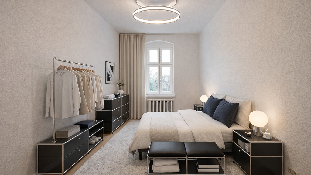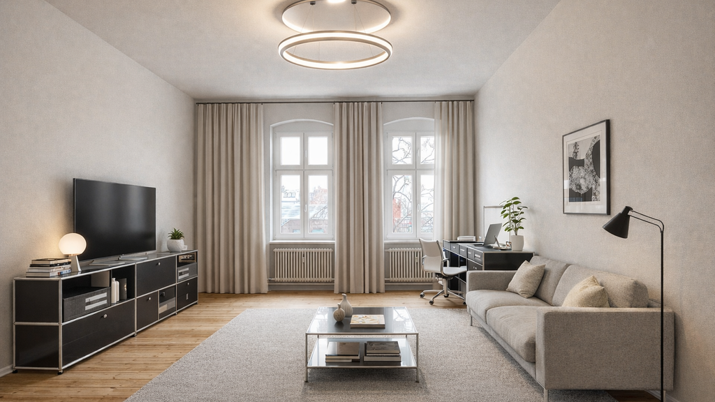 Alle Räume sind praktisch vom Flur aus begehbar und überzeugen durch eine durchdachte, klassische Aufteilung. Die beiden großzügigen Zimmer eröffnen vielfältige Nutzungsmöglichkeiten - ob als stilvolles Wohn- und Schlafzimmer oder als harmonische Kombination aus Wohnen und Arbeiten in einem Zuhause mit Persönlichkeit.