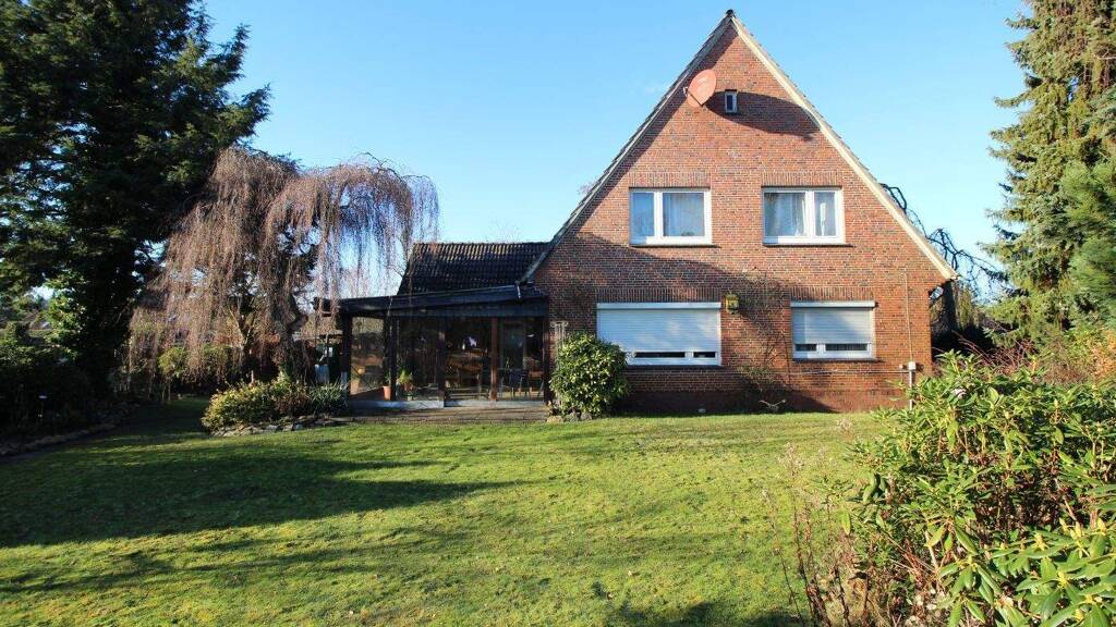 Solides Ein - Zweifamilienhaus in Rotsteinklinker 1965 erbaut mit Garage. Die gesamte Grundstücksfläche beträgt ca. 771 m². Das Haus verfügt über ca. 145 m² Wohnfläche und wird zurzeit als Zweifamilienhaus genutzt. Das Erdgeschoss mit ca. 80 m2 Wohnfläche, 3 ZKB, plus HWR und überdachter Terrasse. Die Oberwohnung ist noch bis Ende November 2026 vermietet und bietet 3 ZKB auf ca. 65 m² Wohnfläche. Fast alle Fenster sind mit Rollläden ausgestattet. Das Haus ist teiweise unterkellert mit 3 Kellerräumen.