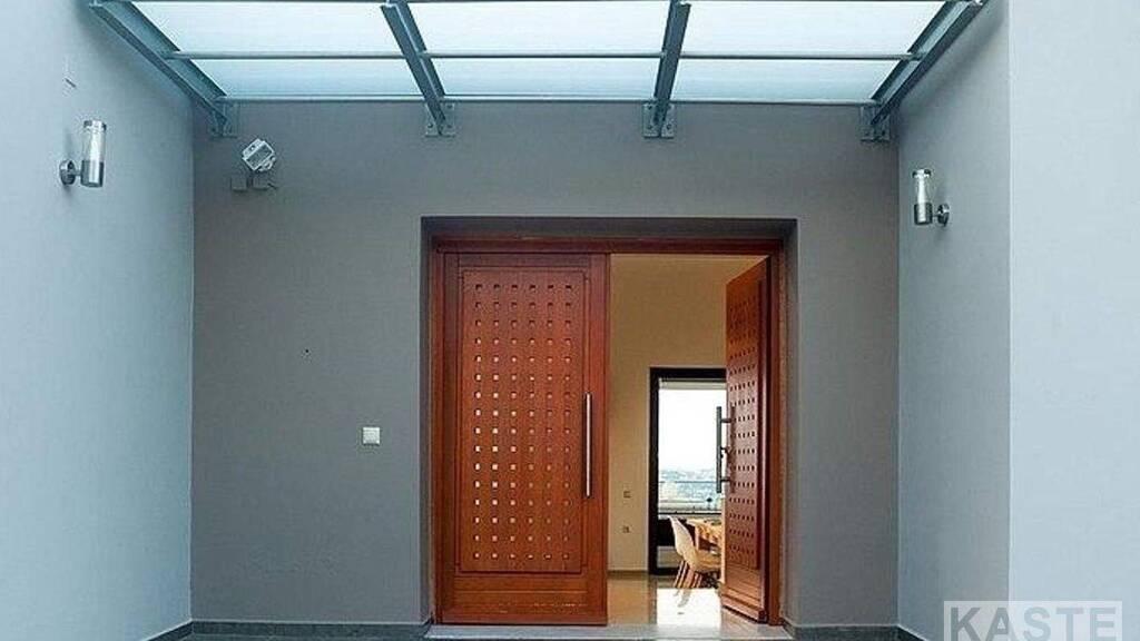 Die Baumaterialien, Armaturen, Einbauten und Möbel sind von sehr hoher Qualität und modernem Stil. Es gibt einen überdachten Parkplatz und Platz für mindestens 10 Autos. Die Villa verfügt über eine zentrale Klimaanlage zum Heizen und Kühlen, die in jedem Raum unterschiedliche Temperaturniveaus ermöglicht, einen Kamin mit Glasfront, hochwertige Aluminiumtüren, Fenster mit schall- und kugelsicherem Glas, elektrische Fensterläden, Holzböden in den Schlafzimmern, eine voll ausgestattete Designerküche und Solarwarmwasser.