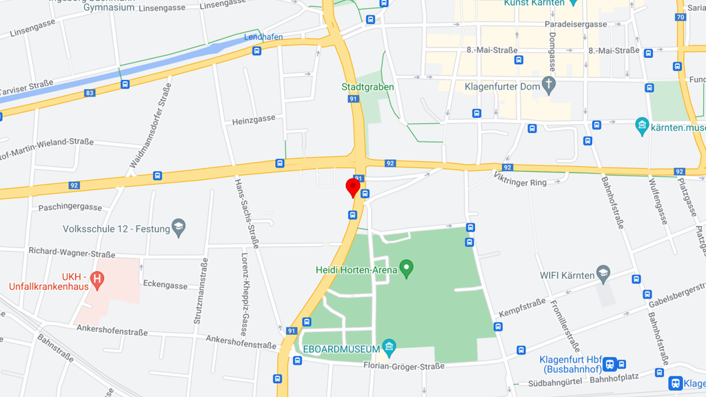 Durch die zentrale Lage und gute Verkehrsanbindung erreichen Sie die Klagenfurter Innenstadt mit zahlreichen Geschäften, Banken, Ärzte und Apotheken in wenigen Minuten.