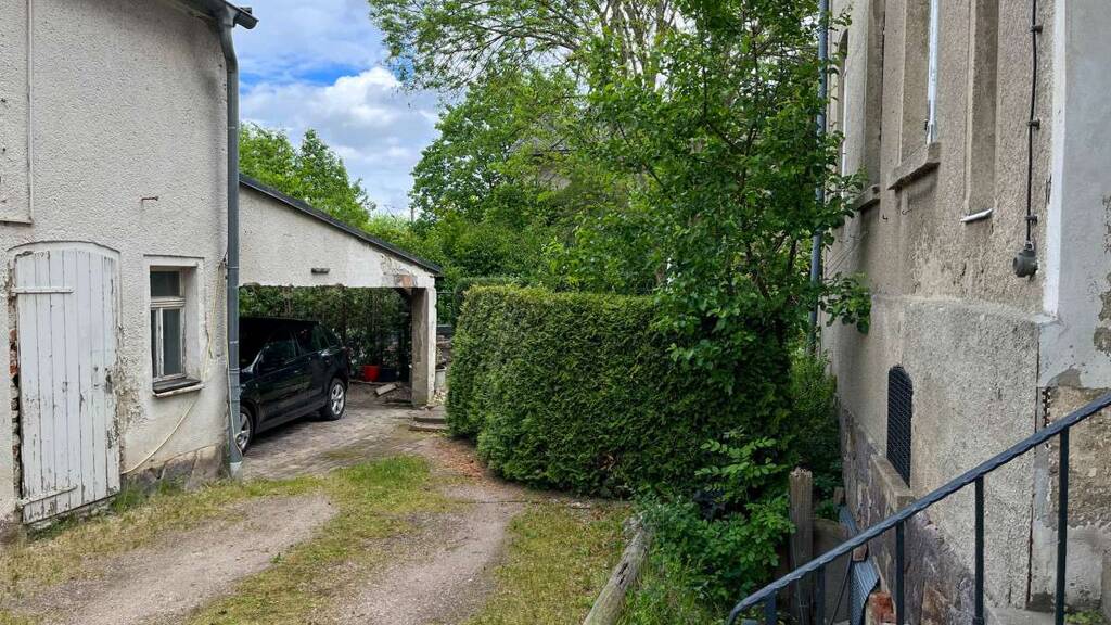 - überdachter PKW-Stellplatz - großer Garten mit altem Baumbestand und Rasenfläche - eine vollständig ausgebaute, bezugsfertige Wohnung - große Gewerbefläche im Erdgeschoss