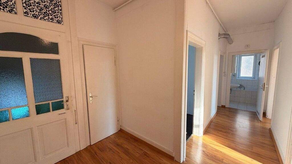 Diese charmante 3-Zimmer-Wohnung befindet sich im 1. Obergeschoss eines historischen Mehrfamilienhauses aus dem Jahr 1900. Die ca. 70 m² große Wohnfläche verteilt sich auf drei helle Zimmer mit hohen Decken und klassischen Glasinnentüren. Die Wohnräume sind mit hellem Parkett ausgestattet, während Küche und Bad gefliest sind. Zur Ausstattung gehören moderne Kunststofffenster und eine Gas-Etagenheizung. Ein besonderes Highlight ist der Balkon mit Blick in den rückwärtigen Garten/Hof, welcher mitbenutzt werden kann. Die Wohnung wird ausdrücklich als renovierungsbedürftig vermietet, was Raum für individuelle Gestaltungsmöglichkeiten bietet.