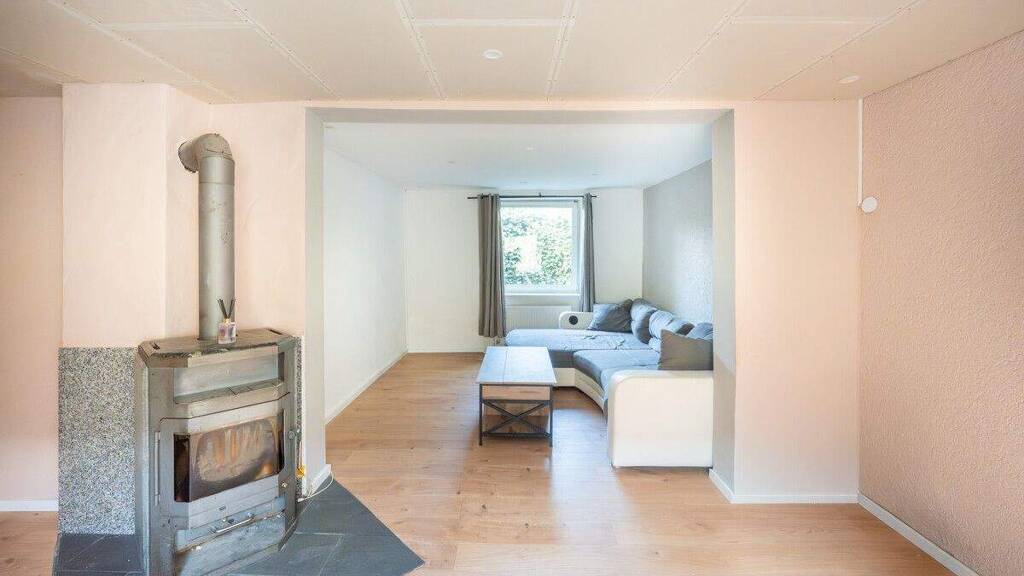 Im Erdgeschoss erwarten Sie eine helle und großzügige Einbauküche, ein geräumiges Wohnzimmer mit Kaminofen, sowie ein Essbereich mit moderner abgehängter Decke und LED-Beleuchtung. Das Badezimmer, 2017 vollständig saniert, präsentiert sich mit Eckbadewanne, Dusche, Urinal, WC und angenehmer Fußbodenheizung sowie Platz für die Waschmaschine.