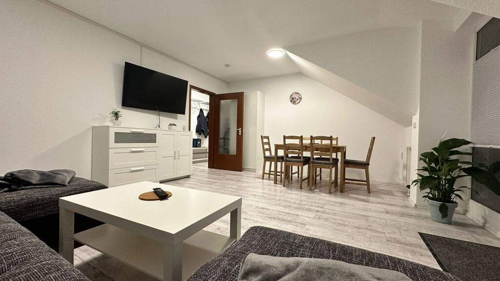 Insgesamt können Sie in der frisch renovierten und geräumigen Wohnung ein Wohnzimmer und zwei Schlafzimmer (je 3 x Einzelbetten), die vollausgestattete Küche, ein Flur und ein Duschbad mit Fenster nutzen.